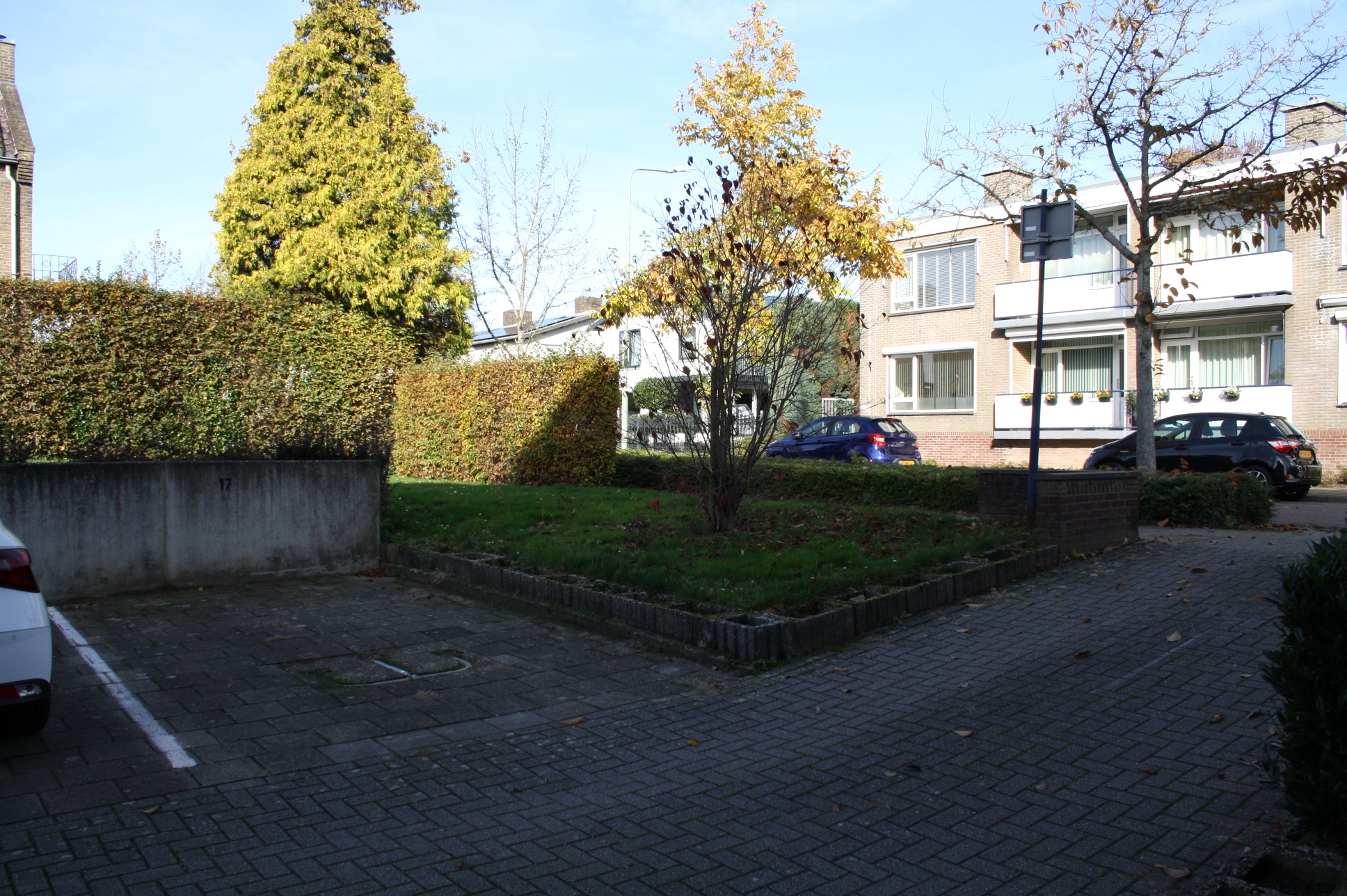 Aan de overzijde van de hoofdingang gelegen prive parkeerplaats.