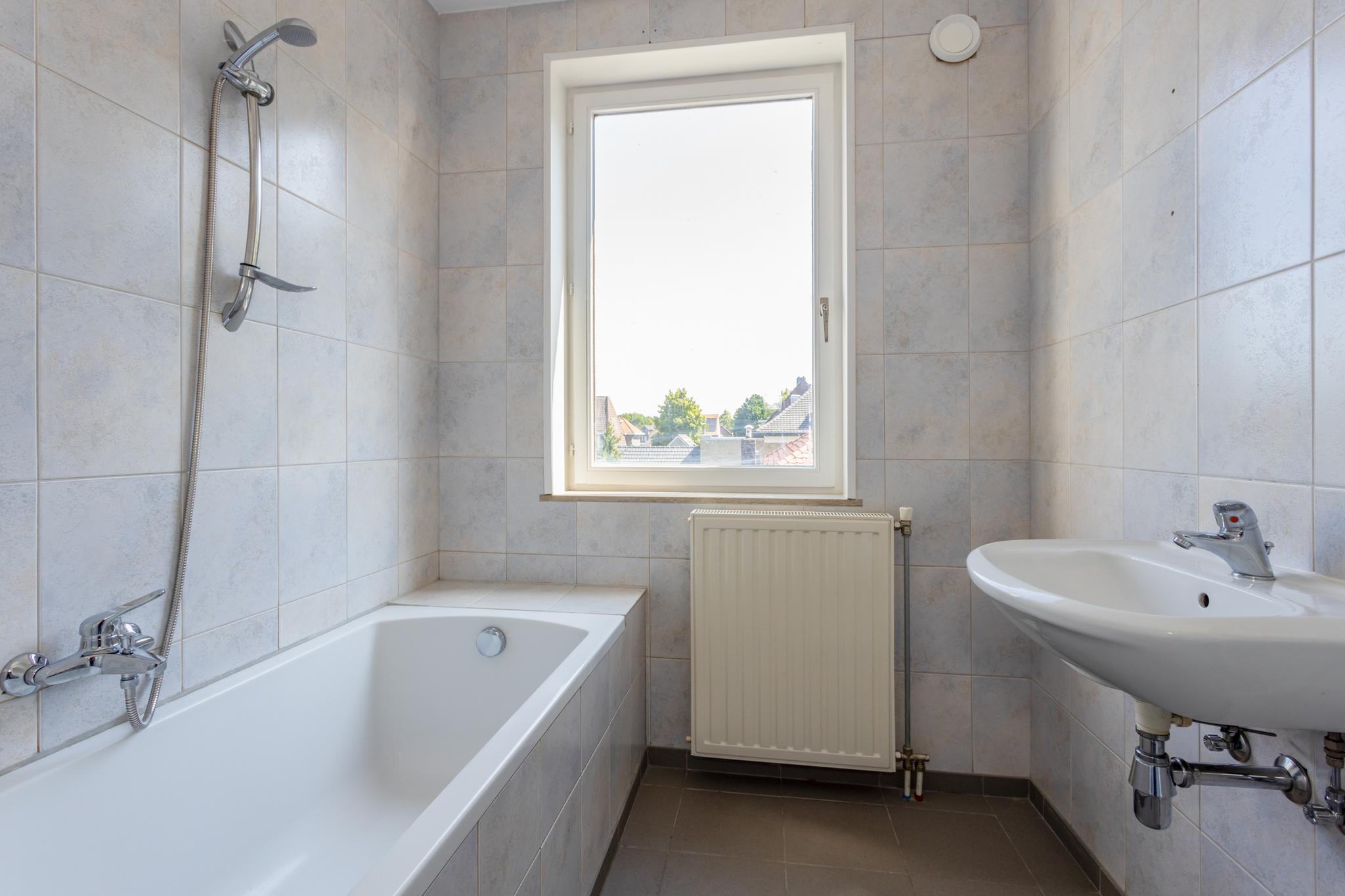 Woonkamer (4.09 x 6.35) met open keuken (2.96 x 2.44) met apparatuur (koelkast, keramische kookplaat, afzuigkap). Berging (1.60 x 0.96). Geheel betegeld toilet (1.11 x 0.94) met fonteintje. Slaapkamer (3.96 x 3.17) met toegang tot badkamer en ruim dakterras. Geheel betegelde en moderne badkamer (3.70 x 2.14) met tegelvloer, ligbad, wastafel en wasmachineaansluiting.