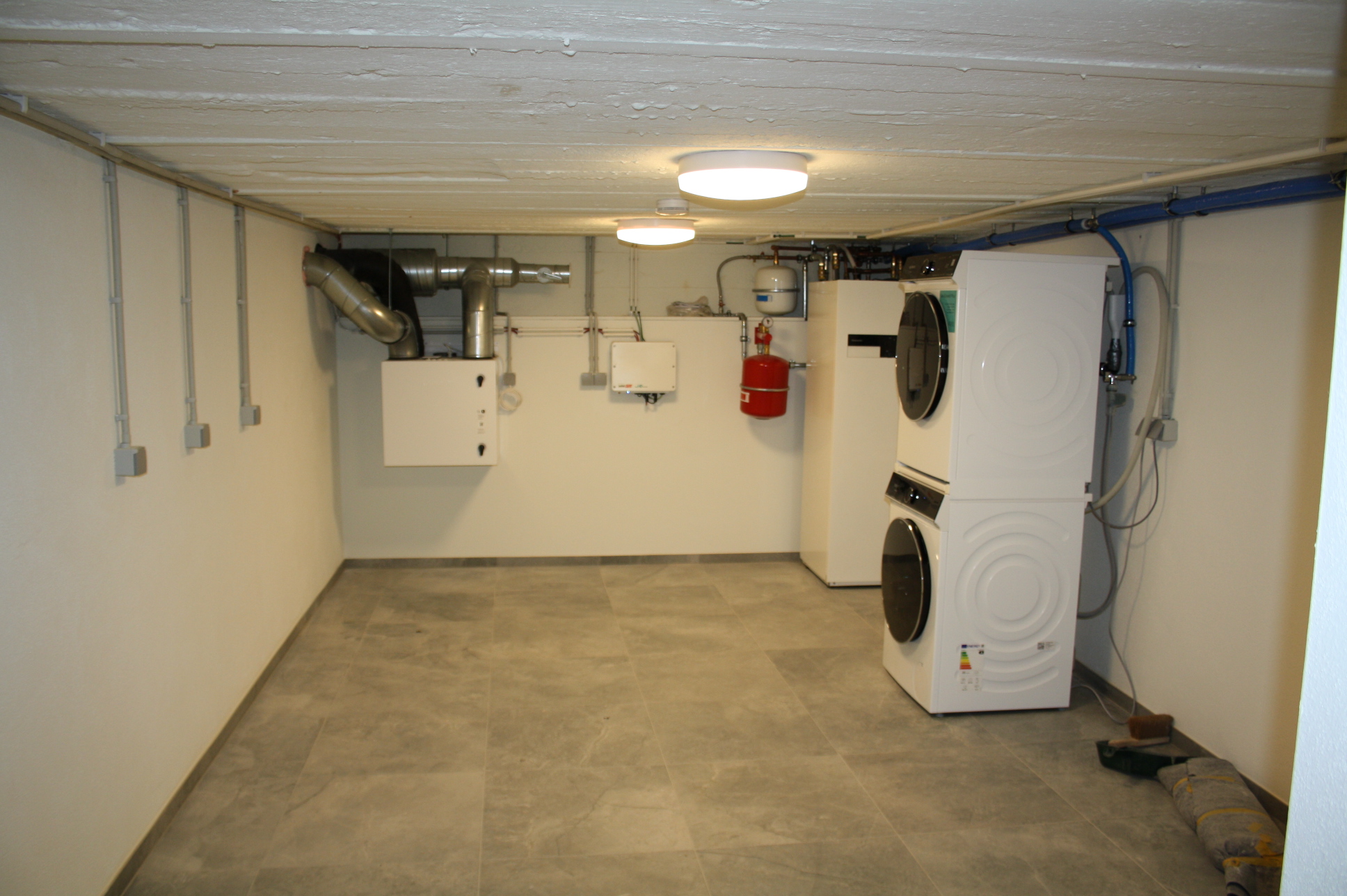 Ruime was-kelder met wasmachine en droger, deze zijn reeds aanwezig.