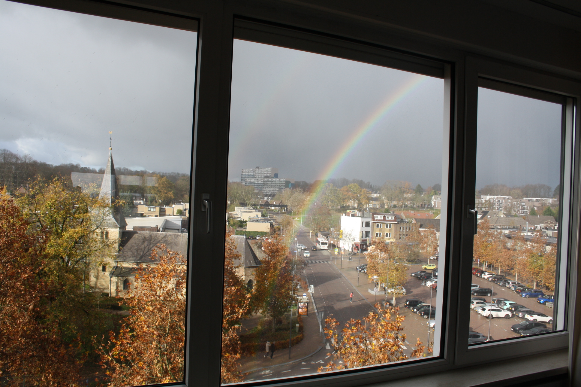 Ontvangsthal (1.00 x 6.05 + 1.00 x 1.77). Geheel betegeld toilet (1.09 x 0.97) met tegelvloer en fonteintje. Ruime woonkamer (9.20 x 3.50) voorzien van laminaatvloer, veel lichtinval en mooi uitzicht over het centrum. Gesloten keuken (3.00 x 2.39) voorzien van aanbouwkeuken met apparatuur (koelkast, vriezer, 4-pits gaskookplaat, oven en afzuigkap). 1 Slaapkamer (3.10 x 4.04) met inbouwkast (1.99 x 0.85). Geheel betegelde badkamer (2.51 x 1.73) met tegelvloer, wasmachineaansluiting, badmeubel met wastafel en inloopdouche met glazen wand.