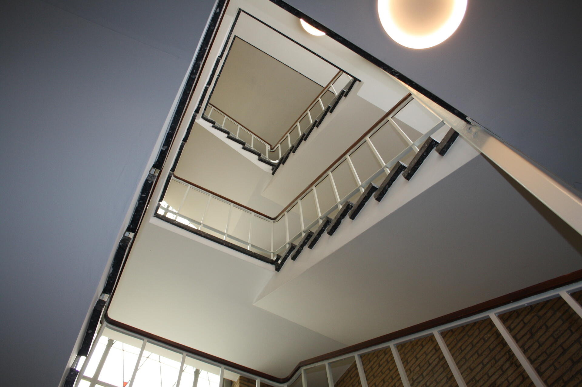 Gemeenschappelijke hoofdentree, deze entree biedt direct toegang tot het schitterende complex. De gangen hebben prachtige glas in loodramen met zicht op de binnenplaats en veel lichtinval. De gemeenschappelijke binnenplaats komt telkens terug en dient als het middelpunt van het authentieke complex.