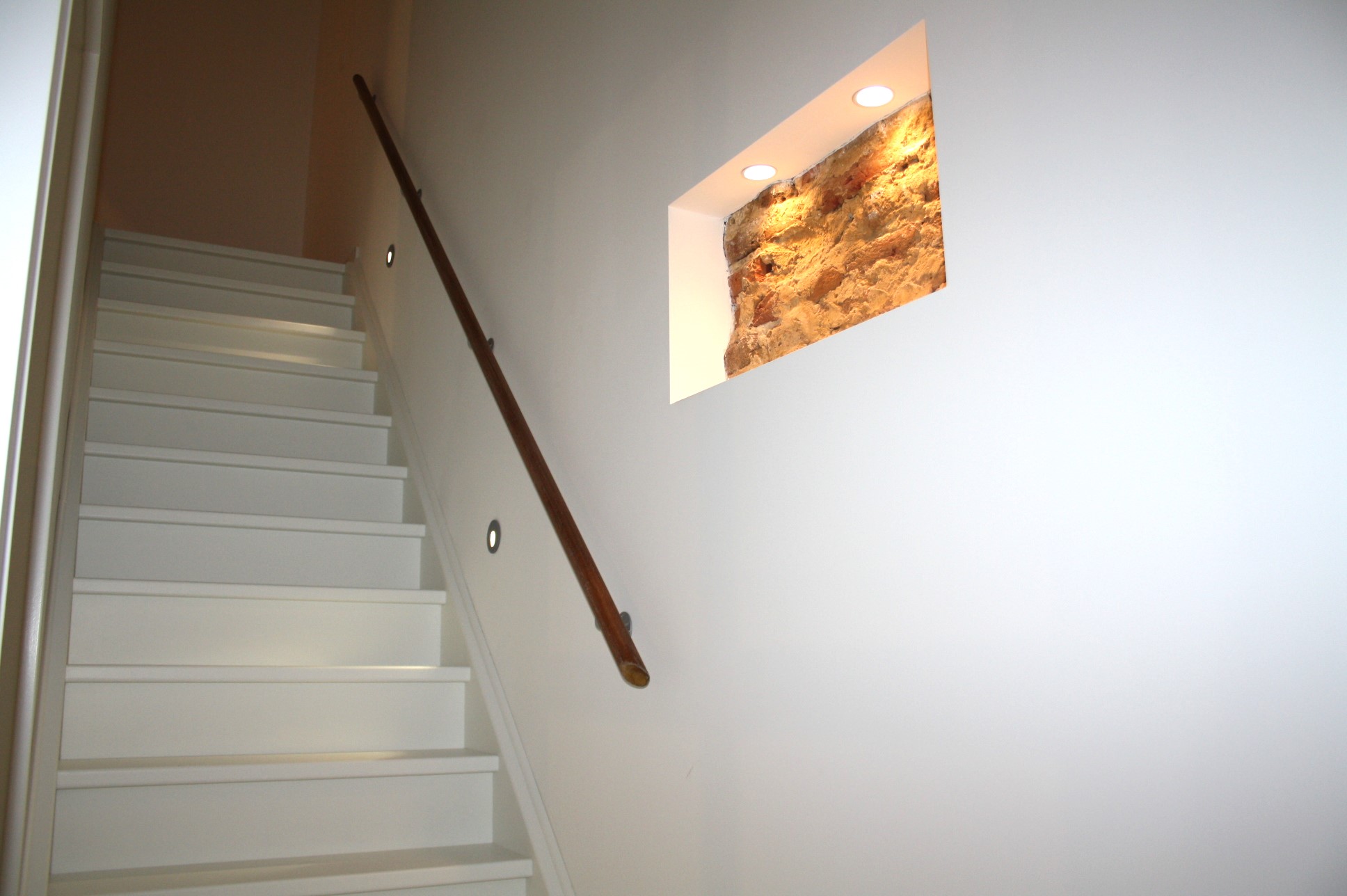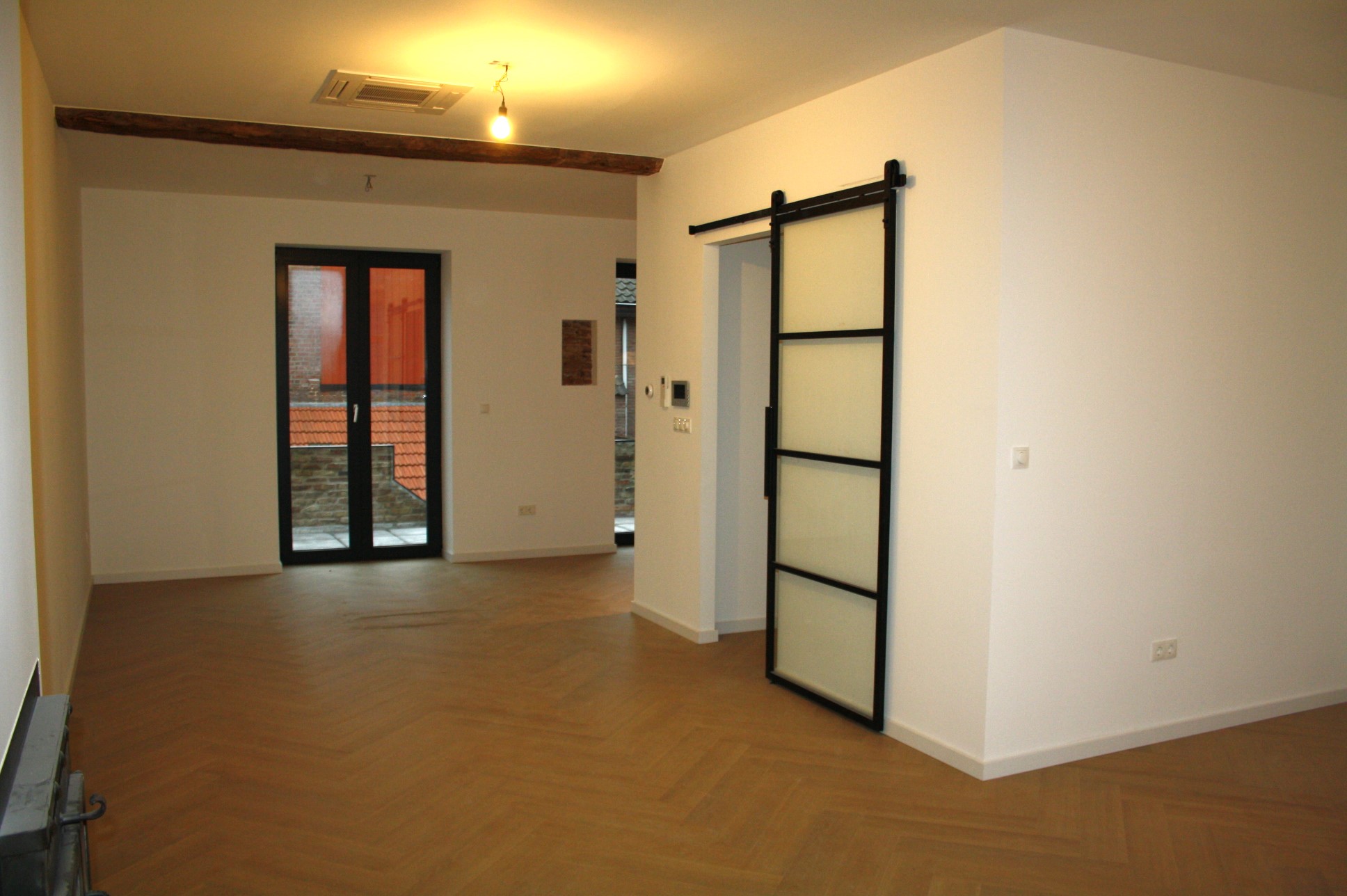Ontvangsthal (1.53 x 2.23). Gastentoilet met fonteintje. L-vormige woonkamer (9.30 x 3.38 / 2.54 x 3.60) met gesloten haard en zicht over de Basiliek. Halfopen keuken (3.71 x 3.00) voorzien van moderne aanbouwkeuken met apparatuur (vaatwasser, inductie kookplaat, afzuigkap, combi-oven, koelkast, vriezer). Vanuit de woonkamer en keuken is het dakterras bereikbaar.