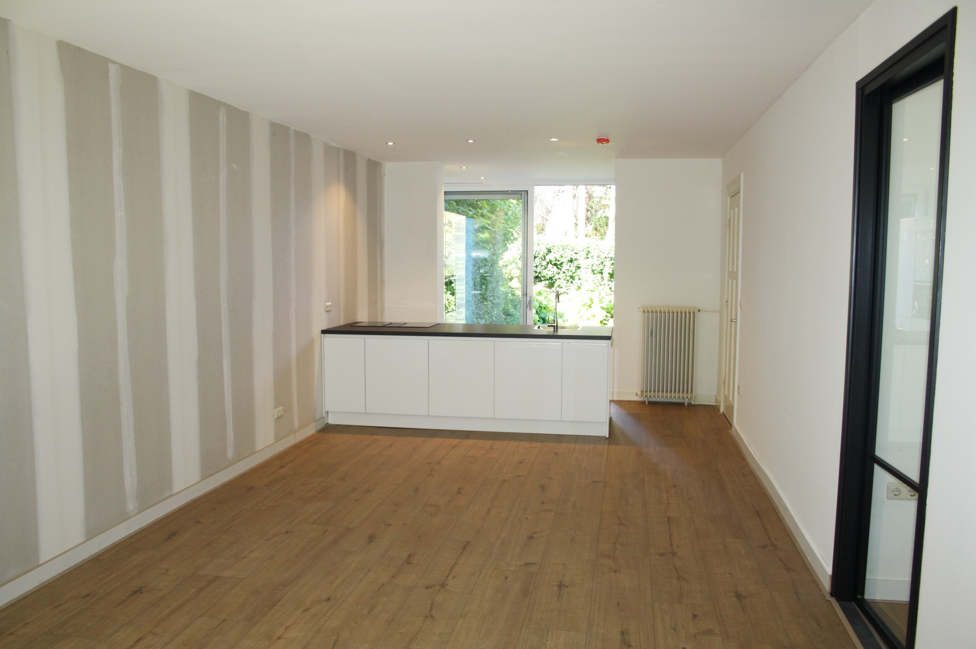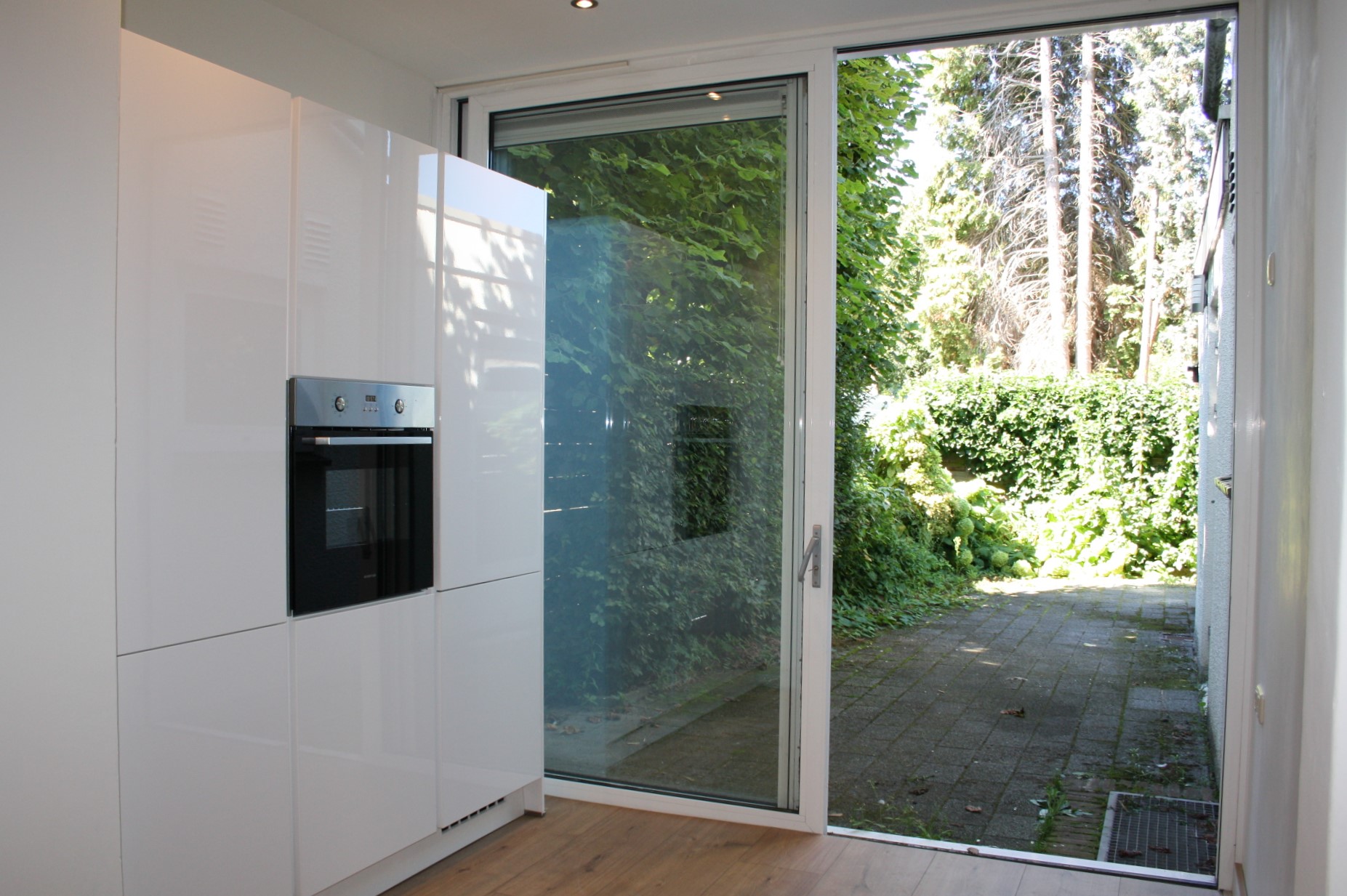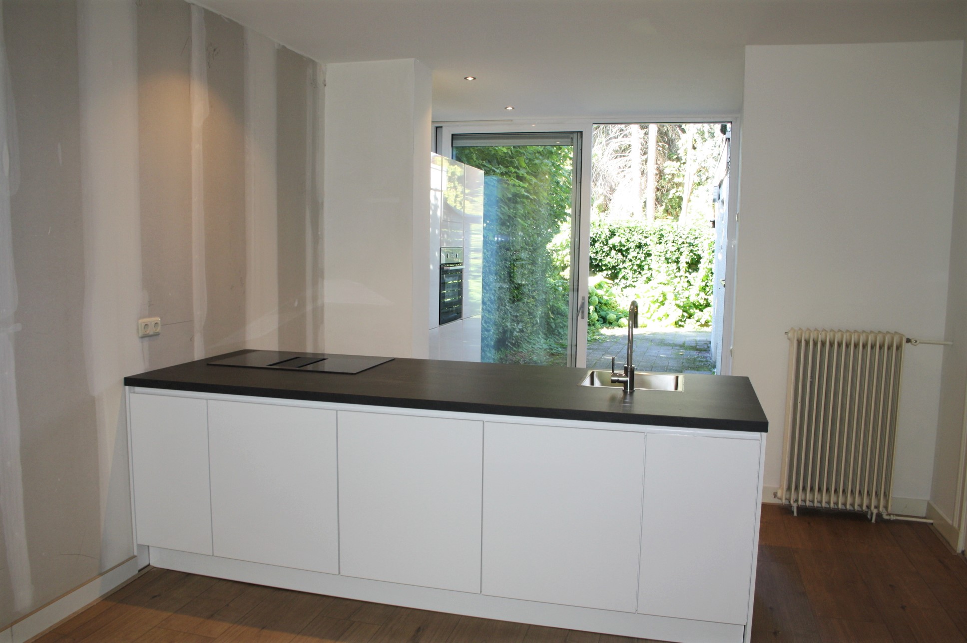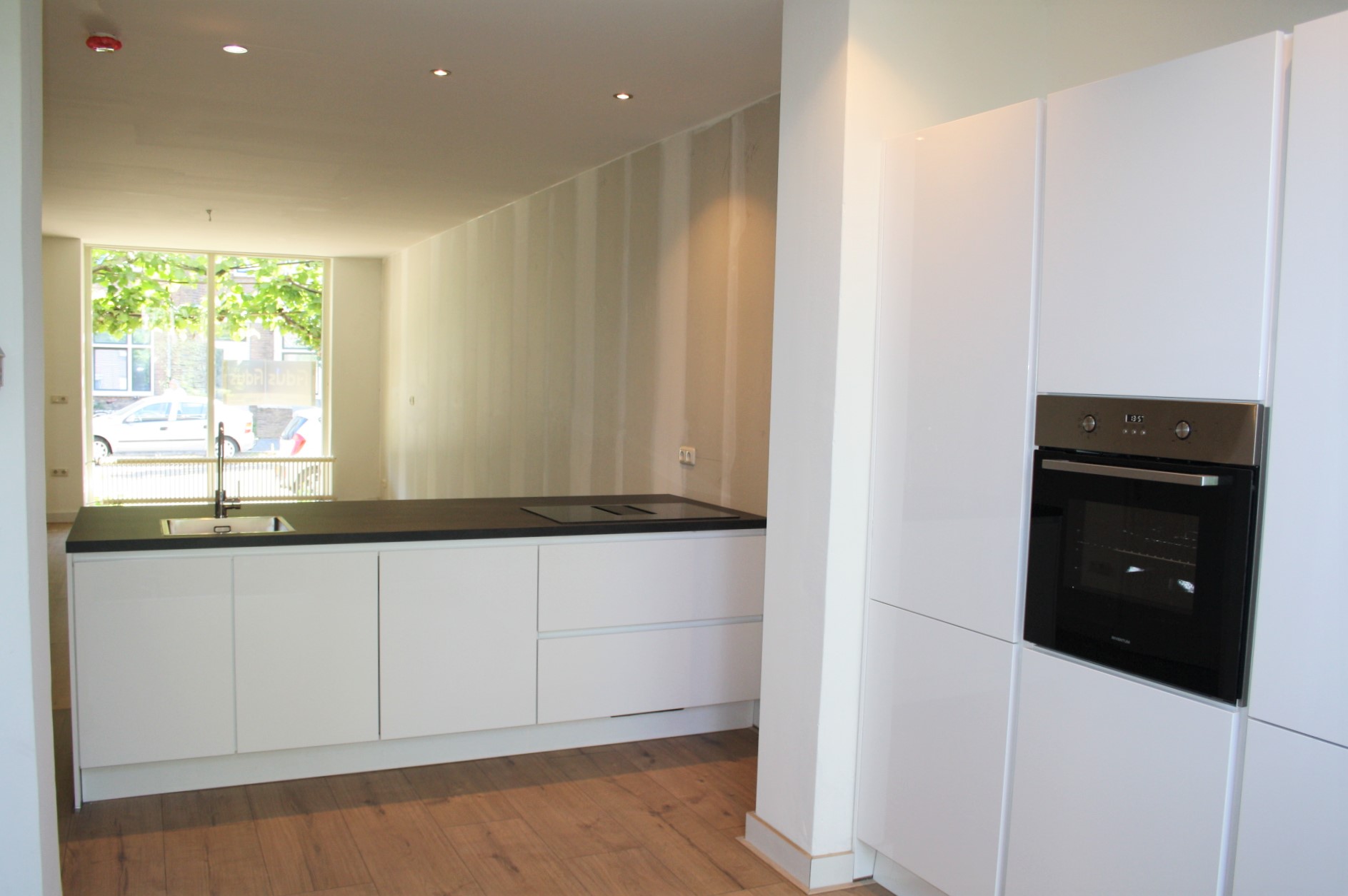 Royale hal/entree. Woonkamer (11.70 x 3.90/2.85) voorzien van mooie laminaatvloer en open keuken. De keuken is voorzien vaan een moderne en luxe aanbouwkeuken met apparatuur (inductiekookplaat,  afzuiging, koelkast, diepvriezer, heteluchtoven, vaatwasser). Vanuit de keuken is middels een schuifpui de tuin bereikbaar. Hal naar bijkeukens. Bijkeuken 1 (3.00 x 2.26) met keukenblok en standplaats cv-ketel. Bijkeuken 2 (3.55 x 2.98) met deur naar tuin.